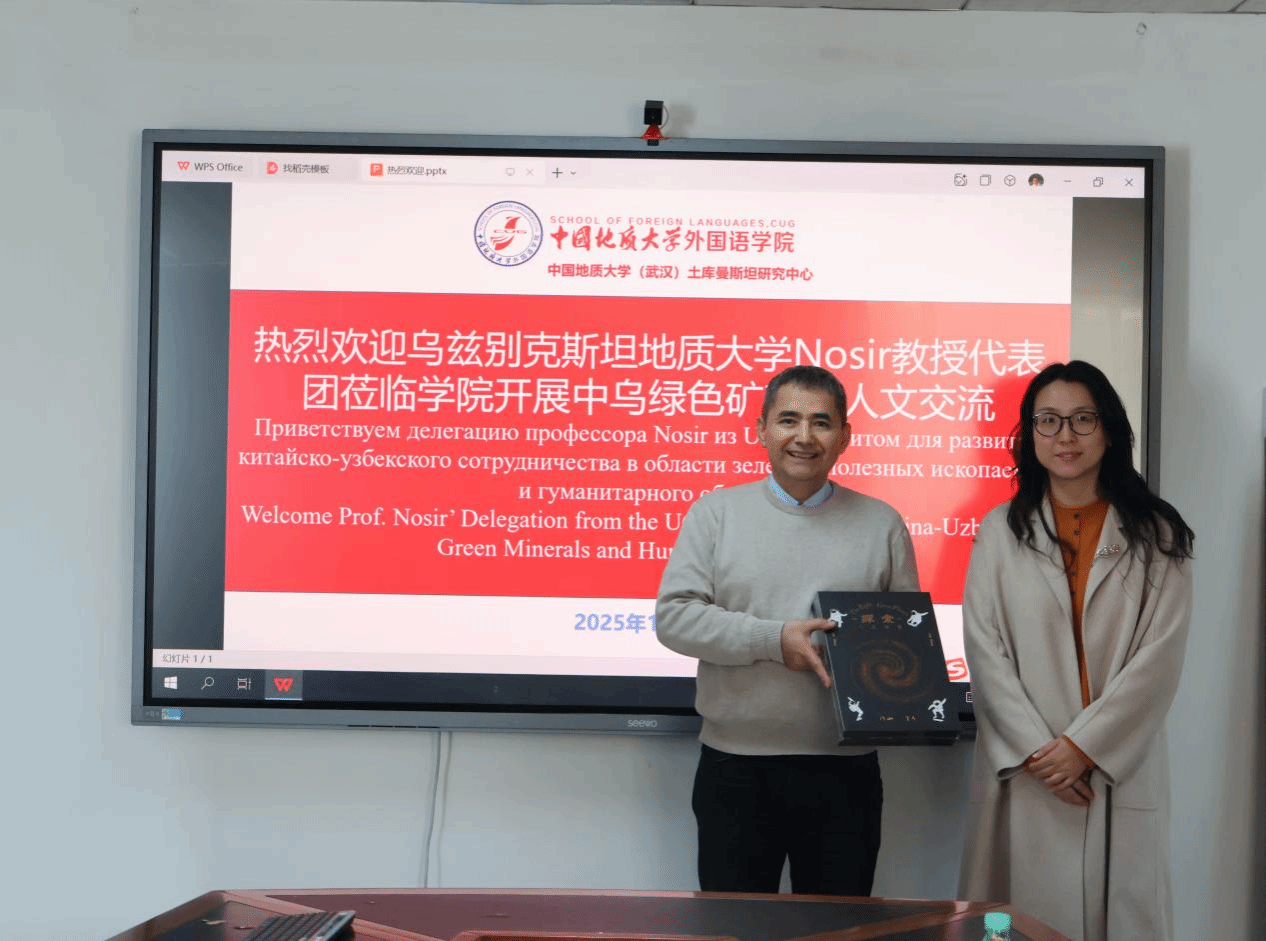 张峻峰致欢迎辞,他指出双方在绿色矿产政策与人文教育领域具有广阔的合作前景。Nosir教授表达了乌兹别克斯坦地质大学与91视频