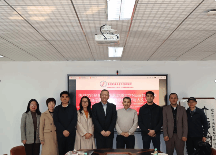 ,共同围绕中乌绿色矿产合作与人文交流展开深入探讨。乌兹别克斯坦地质大学矿产资源所伊索罗夫博士、库伊利夫博士,学院党委书记傅苑、院长张峻峰,以及学院区域国别研究团队的师生代表参加交流会,土库曼斯坦研究中心副主任秦屹主持会议。